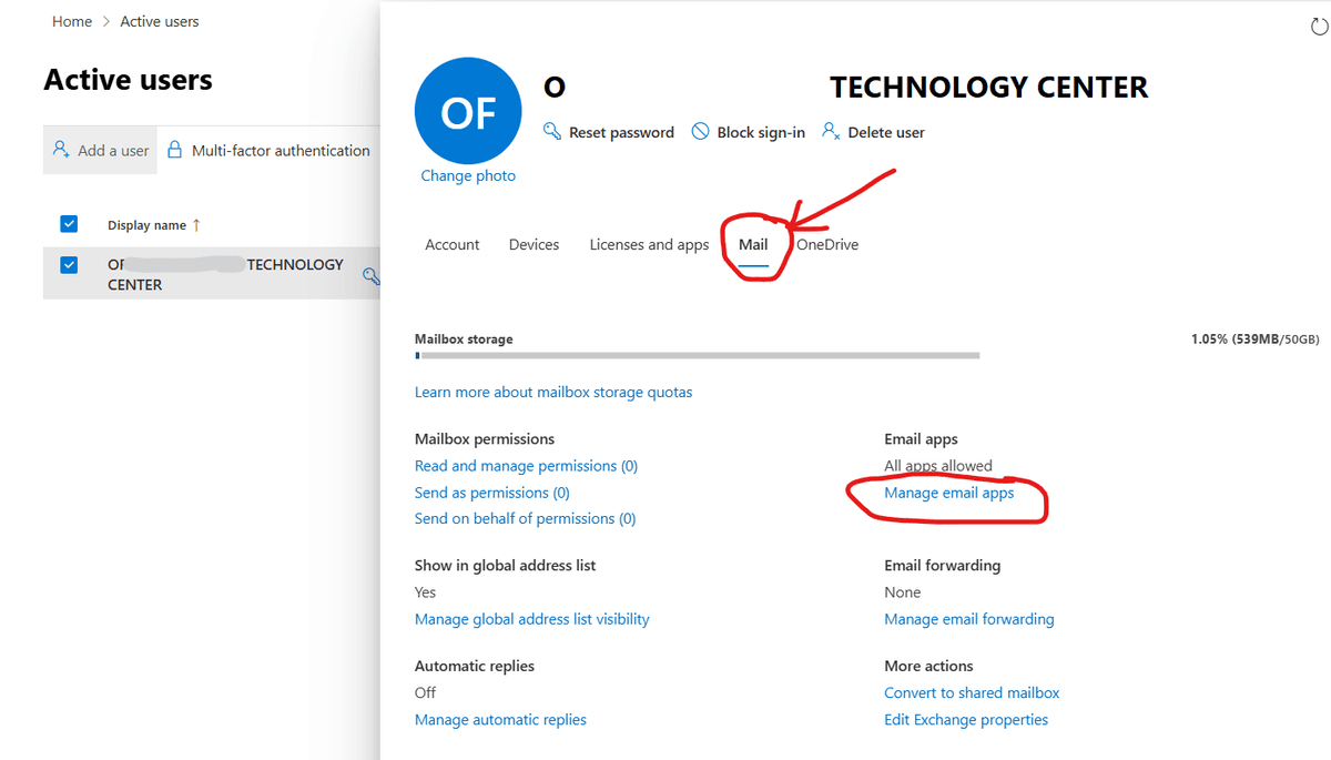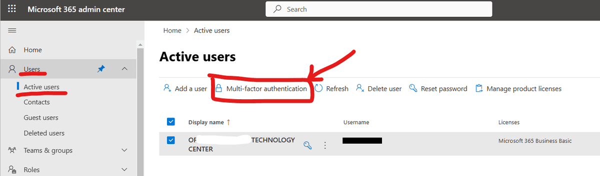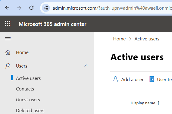 - In the Microsoft admin center, go to Users < Active users