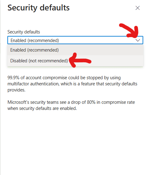 - Disable Security Defaults