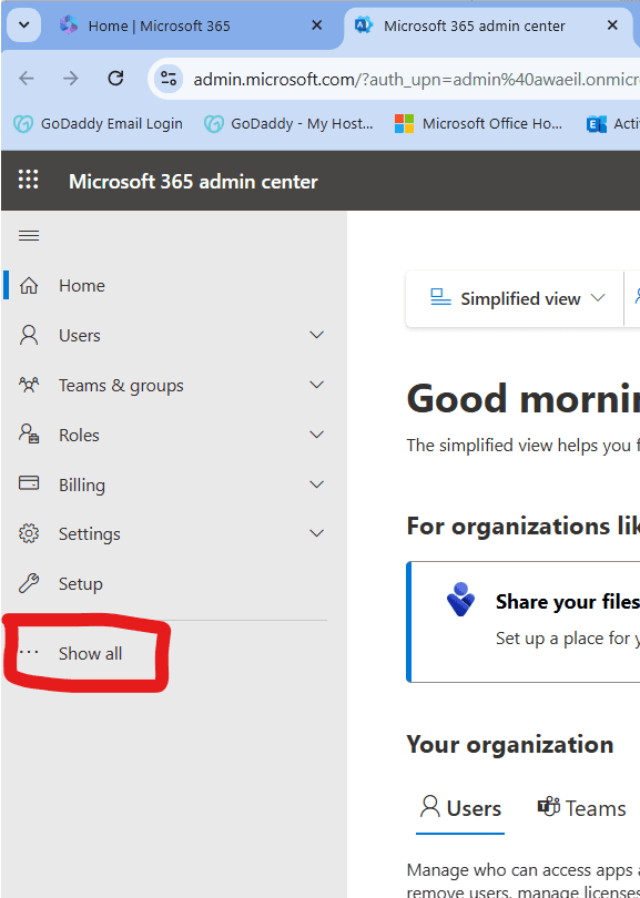 - Access Microsoft 365 Admin Center